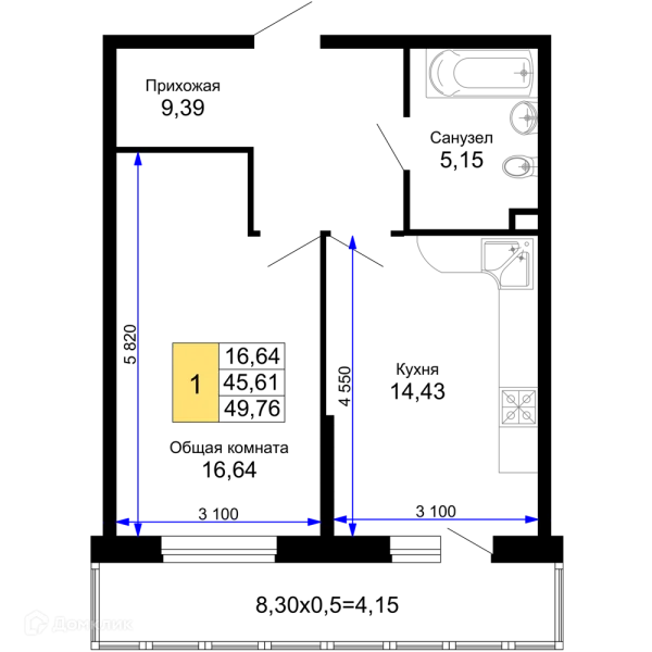 1 комн. квартира в Краснодаре в ипотеку от 58 166 руб/месяц