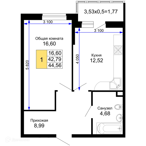 1 комн. квартира в Краснодаре в ипотеку от 44 311 руб/месяц