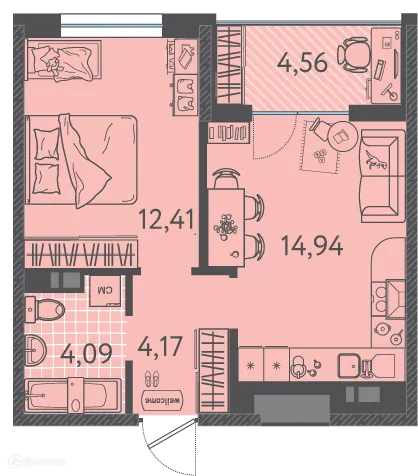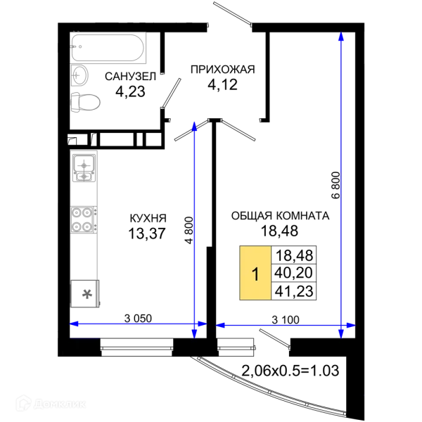 1 комн. квартира в Краснодаре в ипотеку от 41 189 руб/месяц