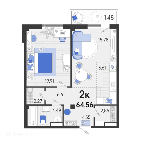 2 комн. квартира в Краснодаре в ипотеку от 76 755 руб/месяц