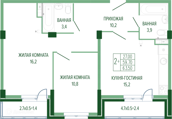 2 комн. квартира в Краснодаре в ипотеку от 66 569 руб/месяц