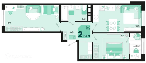 2 комн. квартира в Краснодаре в ипотеку от 86 519 руб/месяц