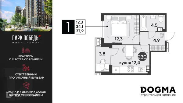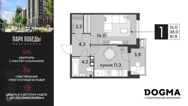 1 комн. квартира в Краснодаре в ипотеку от 41 803 руб/месяц