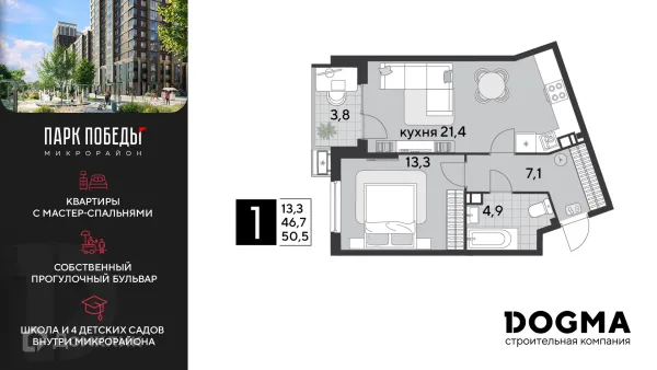 1 комн. квартира в Краснодаре в ипотеку от 46 677 руб/месяц