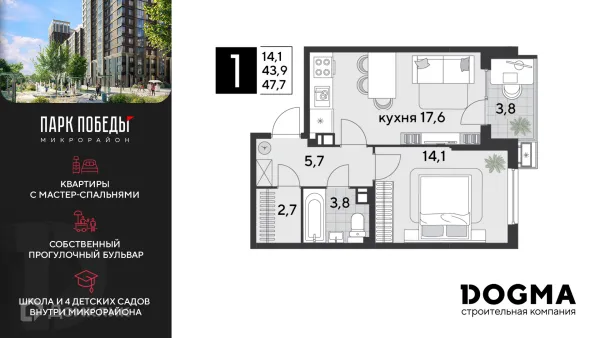 1 комн. квартира в Краснодаре в ипотеку от 46 787 руб/месяц