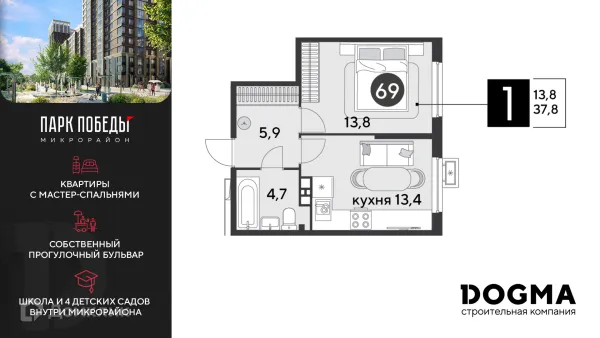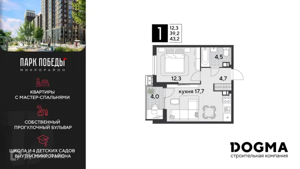 1 комн. квартира в Краснодаре в ипотеку от 42 919 руб/месяц