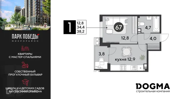 1 комн. квартира в Краснодаре в ипотеку от 44 670 руб/месяц