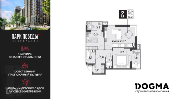 2 комн. квартира в Краснодаре в ипотеку от 57 710 руб/месяц