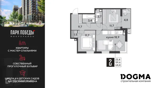 2 комн. квартира в Краснодаре в ипотеку от 59 411 руб/месяц
