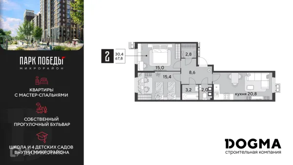 2 комн. квартира в Краснодаре в ипотеку от 59 863 руб/месяц