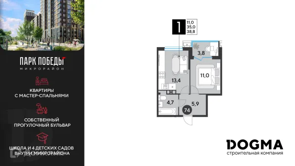 1 комн. квартира в Краснодаре в ипотеку от 41 482 руб/месяц