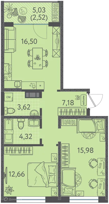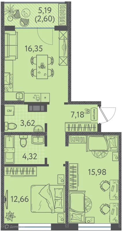 2 комн. квартира в Краснодаре в ипотеку от 63 639 руб/месяц