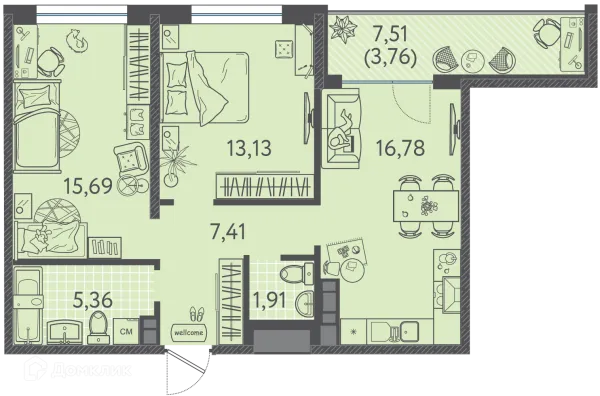 2 комн. квартира в Краснодаре в ипотеку от 69 763 руб/месяц