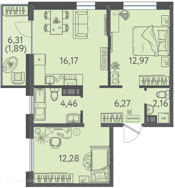 2 комн. квартира в Краснодаре в ипотеку от 63 109 руб/месяц