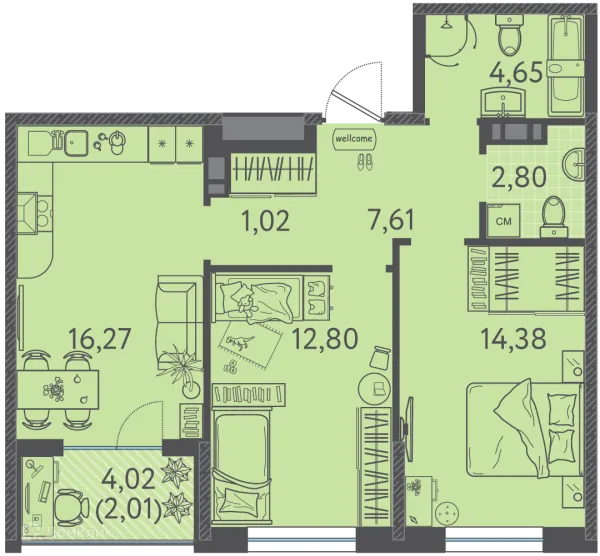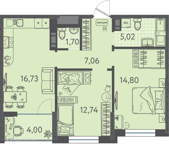 2 комн. квартира в Краснодаре в ипотеку от 61 865 руб/месяц