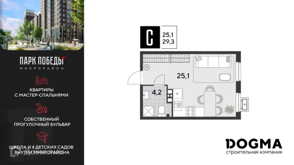 Студия квартира в Краснодаре в ипотеку от 29 808 руб/месяц