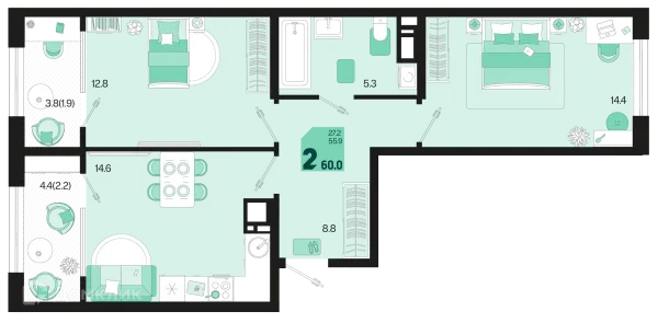 2 комн. квартира в Краснодаре в ипотеку от 55 090 руб/месяц