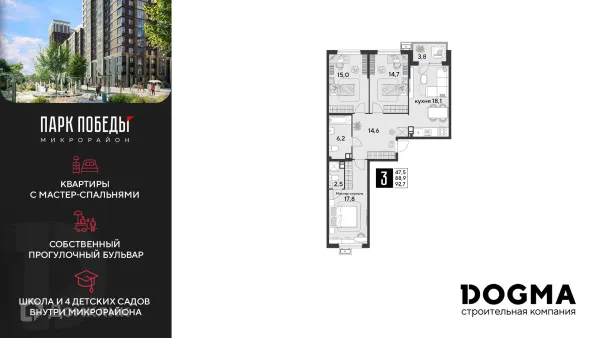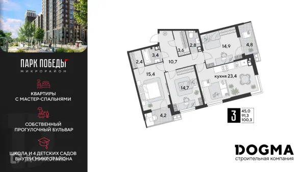3 комн. квартира в Краснодаре в ипотеку от 95 482 руб/месяц