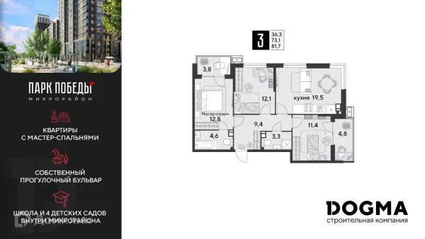 3 комн. квартира в Краснодаре в ипотеку от 73 193 руб/месяц
