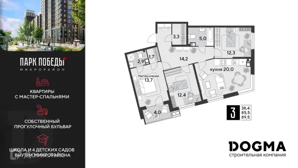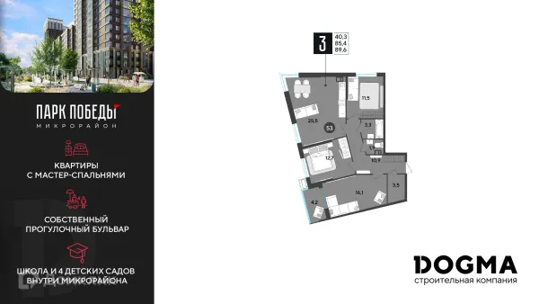 3 комн. квартира в Краснодаре в ипотеку от 69 124 руб/месяц