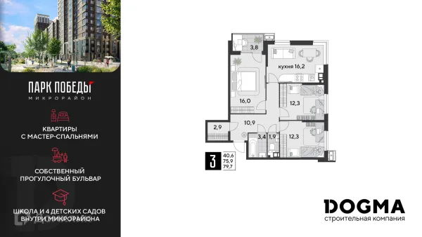 3 комн. квартира в Краснодаре в ипотеку от 72 779 руб/месяц