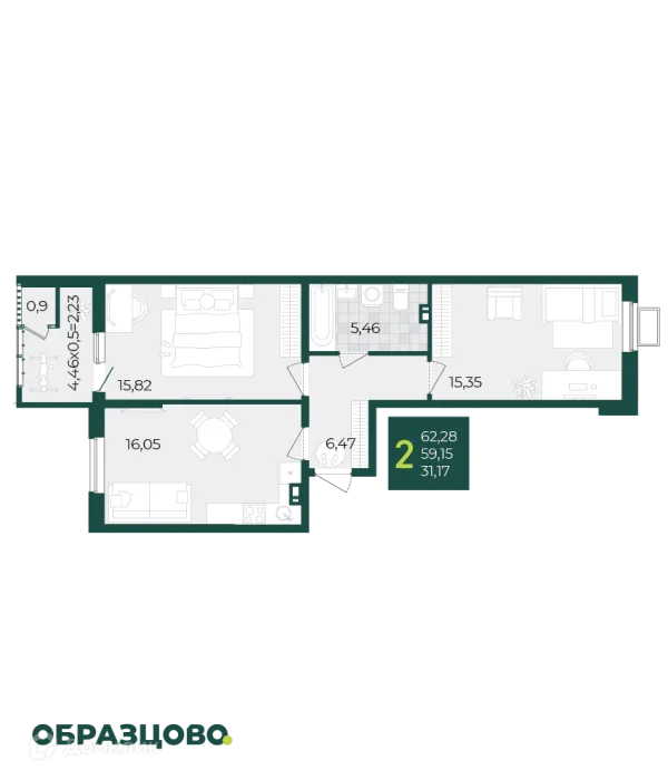 2 комн. квартира в Краснодаре в ипотеку от 63 076 руб/месяц