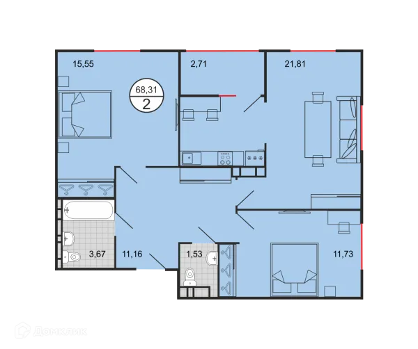 2 комн. квартира в Краснодаре в ипотеку от 58 131 руб/месяц