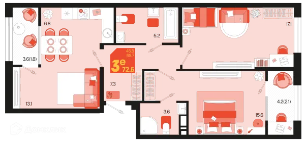 3 комн. квартира в Краснодаре в ипотеку от 73 595 руб/месяц