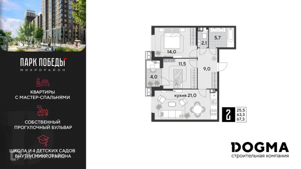 2 комн. квартира в Краснодаре в ипотеку от 66 521 руб/месяц