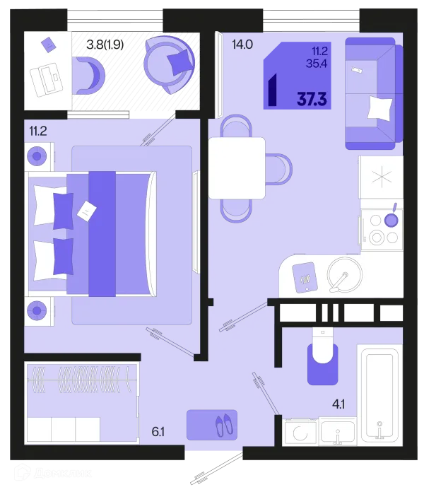 1 комн. квартира в Краснодаре в ипотеку от 41 866 руб/месяц