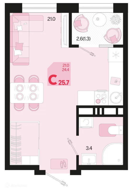 1 комн. квартира в Краснодаре в ипотеку от 46 814 руб/месяц