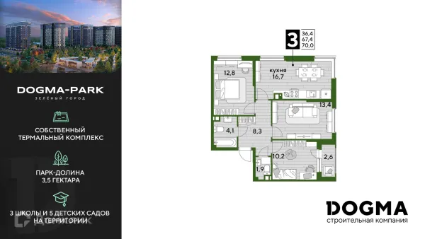 3 комн. квартира в Краснодаре в ипотеку от 68 716 руб/месяц