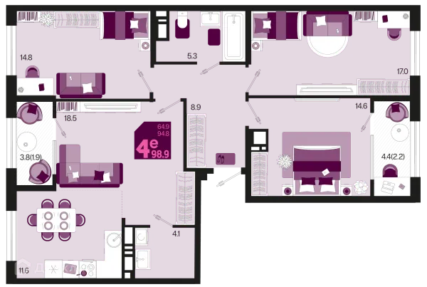 4 комн. квартира в Краснодаре в ипотеку от 91 337 руб/месяц