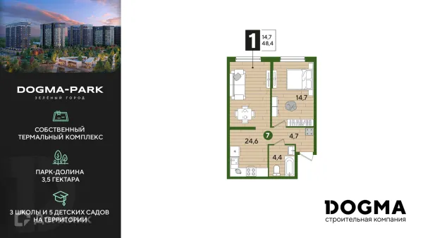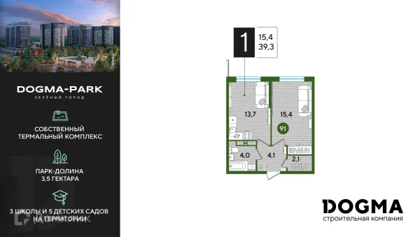 1 комн. квартира в Краснодаре в ипотеку от 41 101 руб/месяц