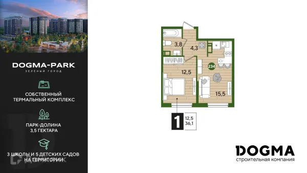 1 комн. квартира в Краснодаре в ипотеку от 38 361 руб/месяц