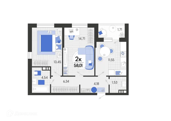 2 комн. квартира в Краснодаре в ипотеку от 53 031 руб/месяц