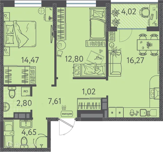 2 комн. квартира в Краснодаре в ипотеку от 56 976 руб/месяц