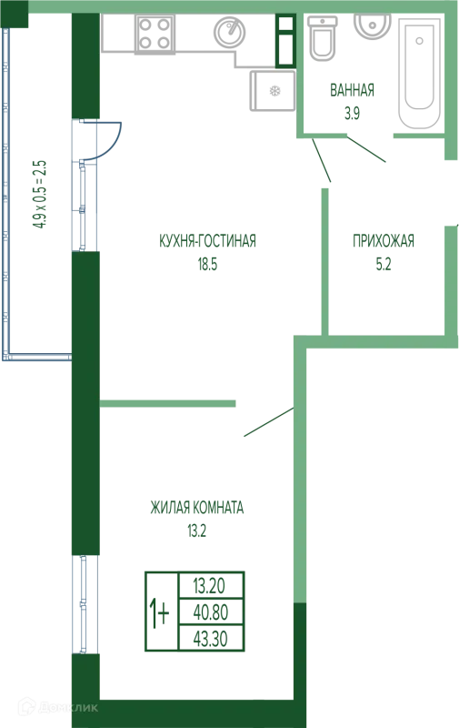 1 комн. квартира в Краснодаре в ипотеку от 51 968 руб/месяц