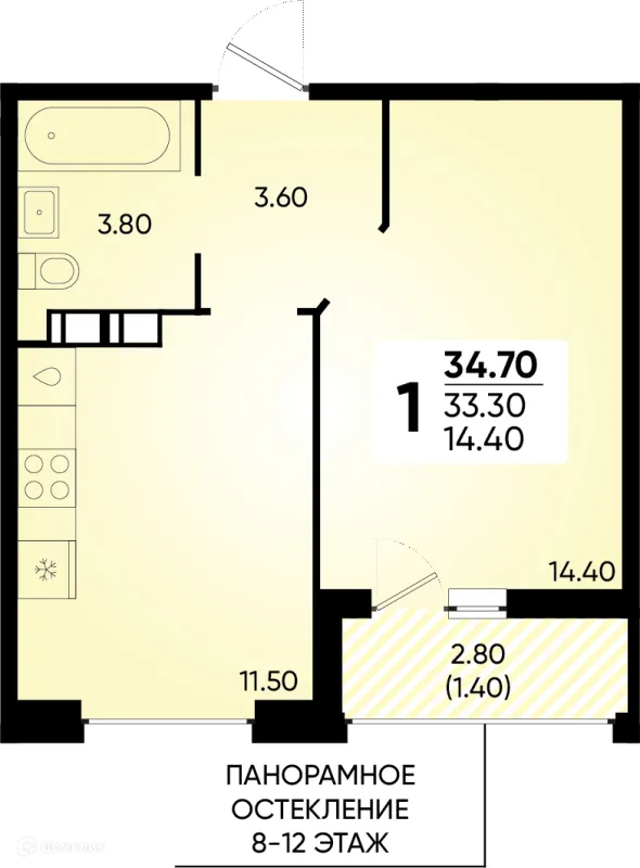 1 комн. квартира в Краснодаре в ипотеку от 43 330 руб/месяц
