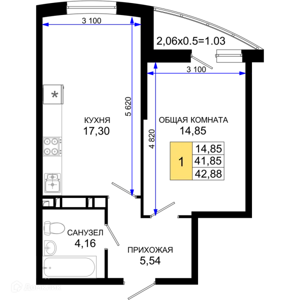 1 комн. квартира в Краснодаре в ипотеку от 42 771 руб/месяц