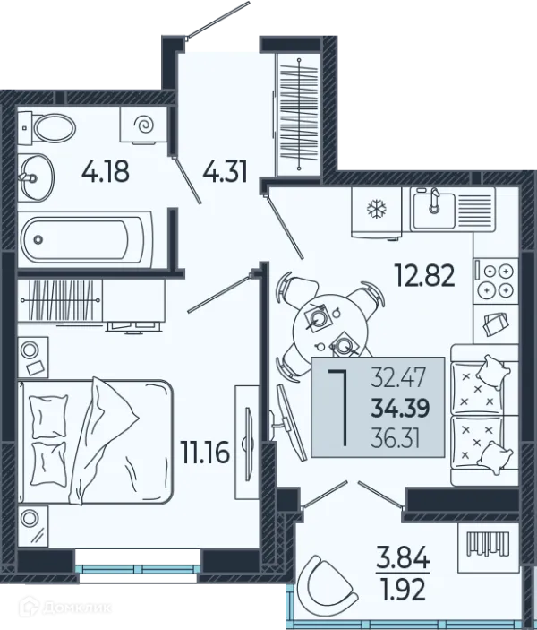 1 комн. квартира в Краснодаре в ипотеку от 58 490 руб/месяц