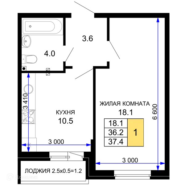 1 комн. квартира в Краснодаре в ипотеку от 40 721 руб/месяц