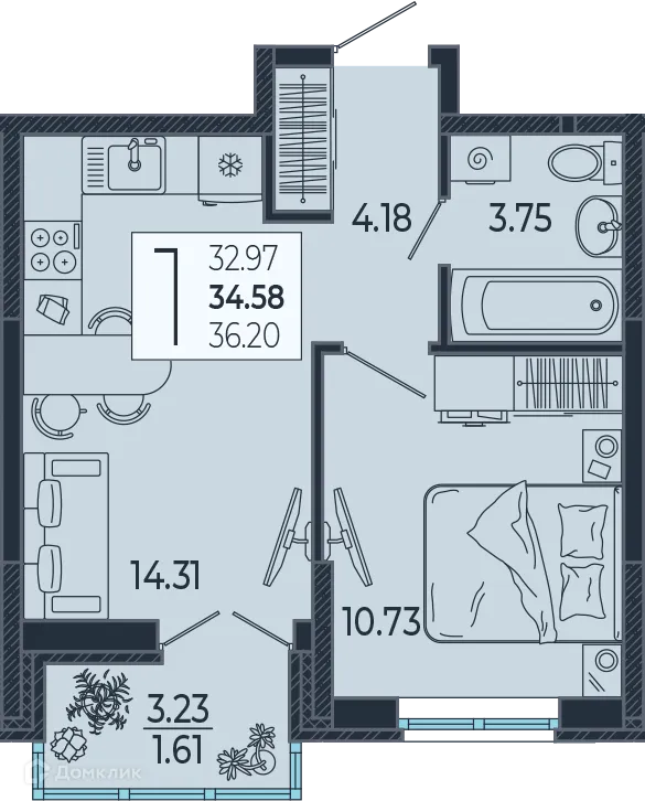 1 комн. квартира в Краснодаре в ипотеку от 68 104 руб/месяц