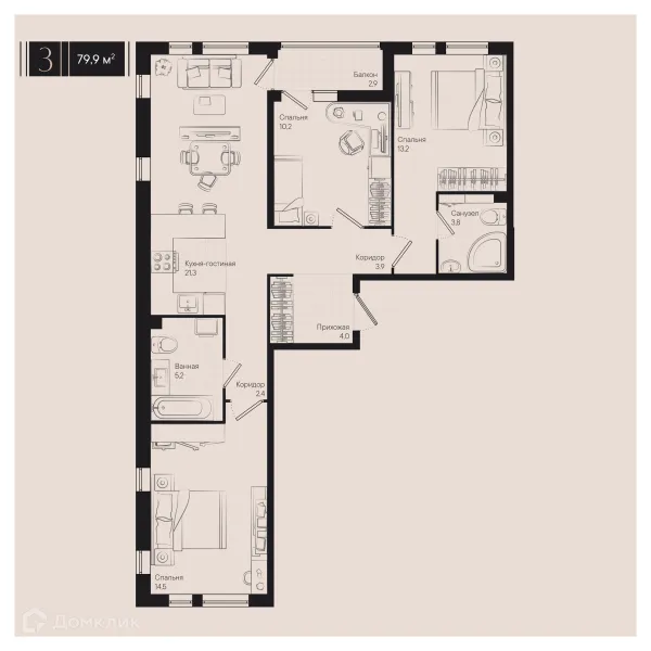 3 комн. квартира в Краснодаре в ипотеку от 189 674 руб/месяц