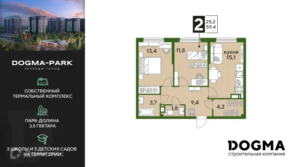2 комн. квартира в Краснодаре в ипотеку от 64 238 руб/месяц