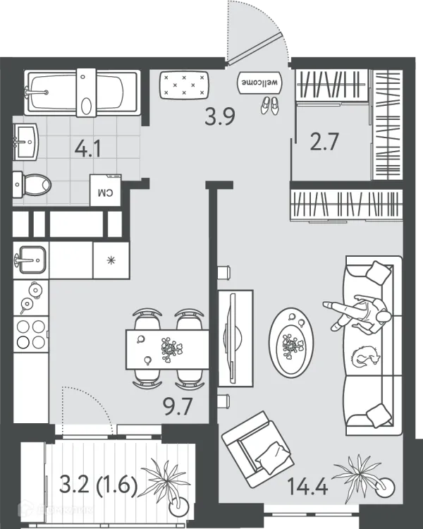 1 комн. квартира в Краснодаре в ипотеку от 41 533 руб/месяц