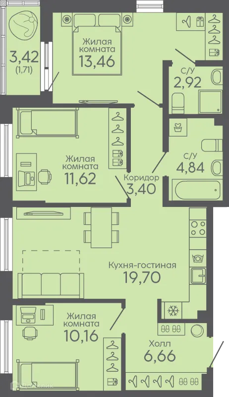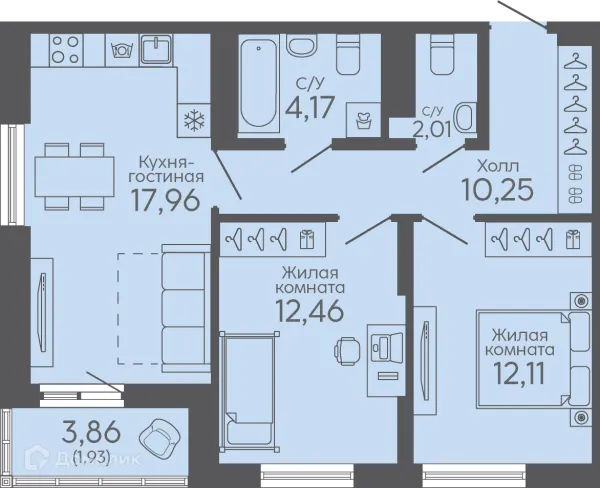 3 комн. квартира в Екатеринбурге в ипотеку от 56 851 руб/месяц