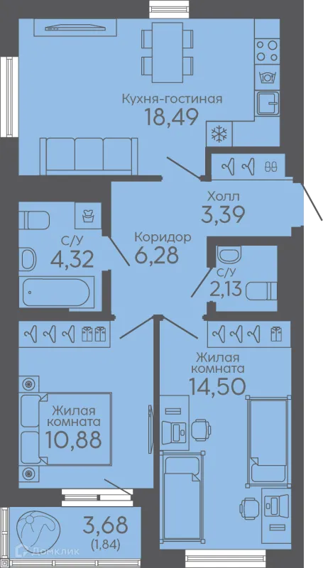 2 комн. квартира в Екатеринбурге в ипотеку от 49 132 руб/месяц