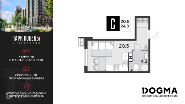 Студия квартира в Краснодаре в ипотеку от 43 545 руб/месяц