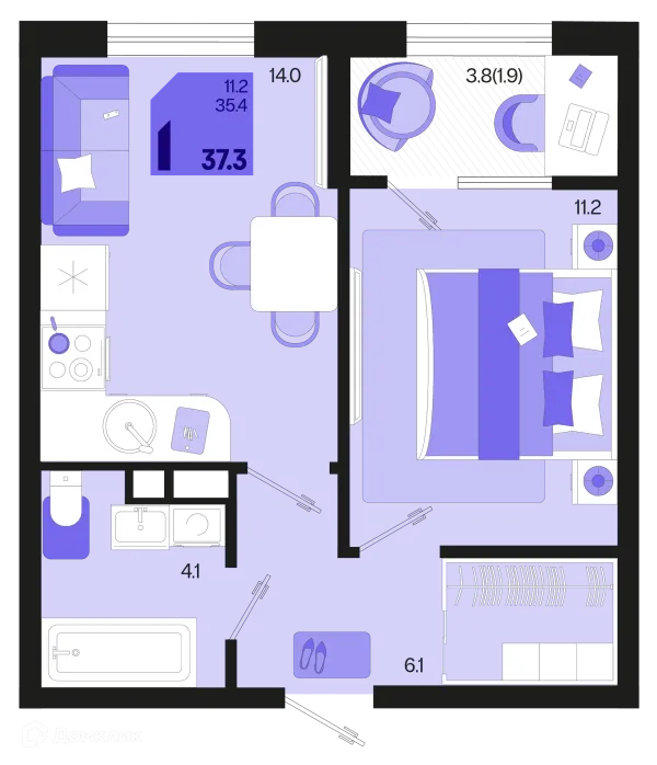 1 комн. квартира в Краснодаре в ипотеку от 37 400 руб/месяц